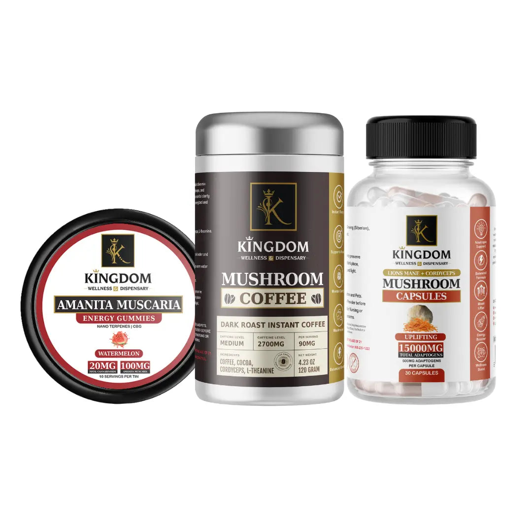 Fuel your focus, creativity, and energy with this adaptogenic trio designed for the mindful mover. Start your day with Mushroom Coffee for grounded energy, stay sharp with Mushroom Uplift Capsules, and get a clean lift anytime with Amanita Mushroom Gummies. It's the ultimate nootropic toolkit.